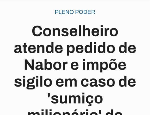 Está lá no Jornal da Paraíba, do querido Eduardo Carlos: “Uma decisão do conselheiro Taciano Diniz, recentemente empossado no Tribunal de Contas do Estado (TCE), impôs sigilo por tempo indeterminado em um processo que apura o ‘sumiço’ de milhões em…