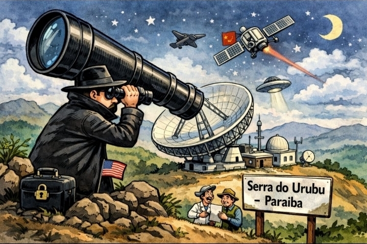 O Congresso dos EUA resolveu enxergar espionagem até na Serra do Urubu, em Aguiar, Paraíba, onde o radiotelescópio BINGO mal saiu do chão e já virou ameaça global.